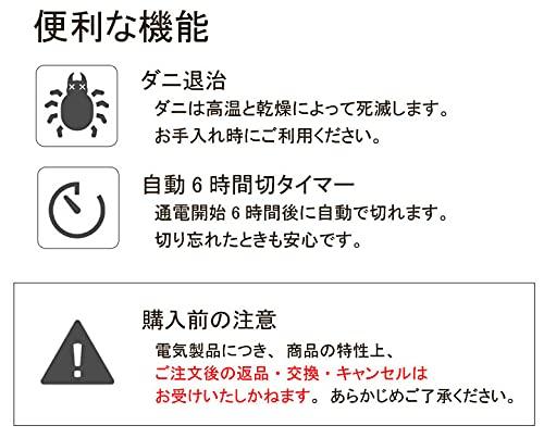 3営業日以内に発送≪新品未開封品≫:【サイズ】 約126×180cm(1.5畳サイズ) カバーは130×180㎝より大きいのカバーをお買い求めください。【素材】 ポリエステル100% ※ダニ退治 6時間切りタイマー【定格】 360W(交流100V)50/60Hz 【コード長さ】 約1.5m【電気代】 中 約4.2円/1時間 強 約5.3円/1時間 【消費電力量】 中 約155Wh/1時間 強 約195Wh/1時間 【表面温度】 中 約35度 強 約45度【生産国】 中国