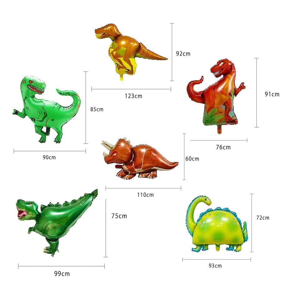 【恐竜バルーン6体 セット内容】: オレンジテイラ/サウルス*1 グリーンテイラ/サウルス*1 ヤラトプス*1 トリケラトプス*1 ラプター*1 フラキオサウルス*1【最高な誕生日プレゼント】: 子供誕生日のプレゼントに大人気バルーンセットです。恐竜をテーマとするこのスペシャル誕生日パーティーを抵抗する少年がいない。子供と一緒に組み付けること自体が非常に楽しくて、そして子供にとって実践能力が鍛えられますので、出来上がった後達成感を感じられます。最高な誕生日プレゼントなります。【子供誕生日パーティーにも使え】: 子供さんは恐竜さえ好きならば、少女向けの誕生日パーティーにも使えますか。 恐竜をテーマとする誕生日パーティーを開いて、写真を取る時に、バックグラウンドとして恐竜バルーンがとてもいいアイテムなります。彼女の記念写真を忘れない思い出ができると思います。【空気入れで簡単】: 空気入れで簡単に充気可能です、商品写真の所で分かりやすく充気方法を説明しており、是非ご参考宜しくお願いいたします。【厚くの材質を使って】: とても品質がよく、割れにくいアルミバルーンなります。より厚くの材質を使って、特に割れることありません。【アルミ風船を膨らませる方法】: 1.こちらの穴から、ガスや空気を入れていきます。 2.ストローを入れる場合は、ゆっくりストローをまわしながら入れます。 3.あとは、バルーンを押さえながらプッシュを繰り返し空気を入れていきます。 4.ストローを外し、封をつまんで閉じます【アルミ風船を膨らませる方法】: 1.こちらの穴から、ガスや空気を入れていきます。 2.ストローを入れる場合は、ゆっくりストローをまわしながら入れます。 3.あとは、バルーンを押さえながらプッシュを繰り返し空気を入れていきます。 4.ストローを外し、封をつまんで閉じます。【注意】: 風船は割れることがございますので、空気を入れ過ぎないようにしてください。材質はアルミのバルーンです。ゴム製に比べると強度は比較的あります。検品等はしておりますが、小さな穴等は見つけられないため、万が一空気が漏れるようなことがあれば、セロテープ等粘着力の強い透明テープで塞いでいただきますようお願いします。【免責事項】メーカーによる商品リニューアルに伴いパッケージ(内容量も含む)変更が行われた場合、新パッケージでお届け致します事ご了承願います。