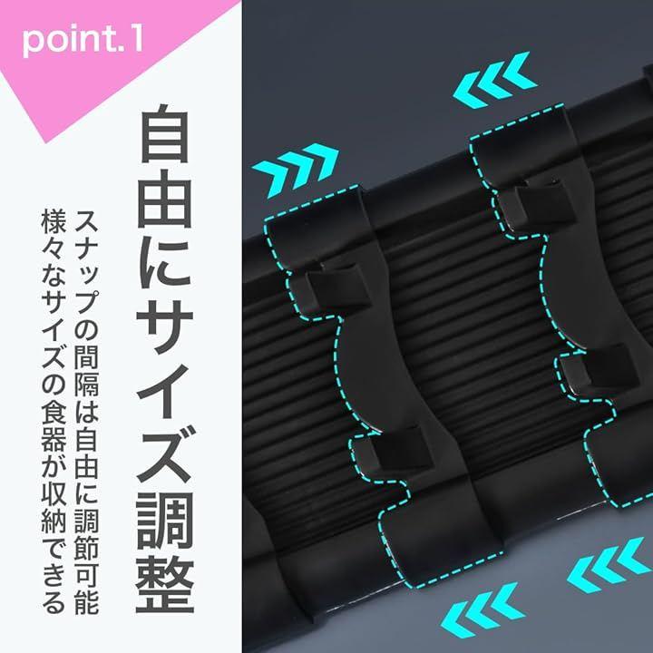 市販の一般的な製品とは異なり、自由自在に間隔を調節できるので、様々なサイズの食器を柔軟に収納することが可能です。