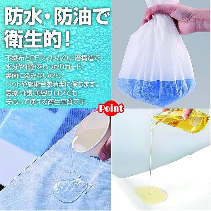 防水加工済みの不織布シーツは、不意の来客用、介護用品、エステサロンや整体、マッサージのベッド用など、幅広いシーンでご利用いただけます。