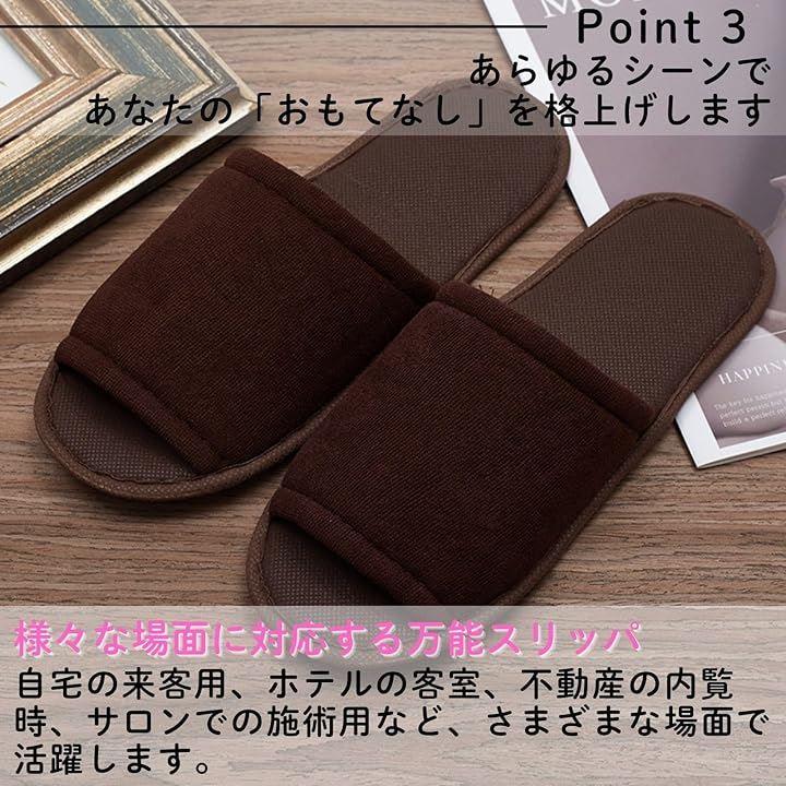 「様々な場面に対応するスリッパ」自宅での来客用、ホテルや旅館の客室用、不動産内覧時の案内用、サロンの施術用など、用途は多彩。