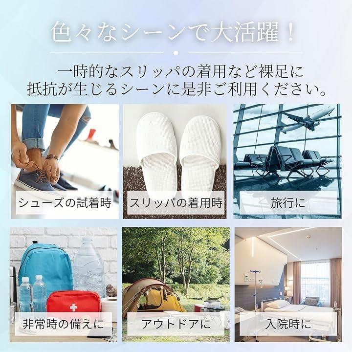 訪問介護や入院時、裸足でのスリッパ着用が気になる際や、アパレルショップ、靴屋での試着用にも最適です。