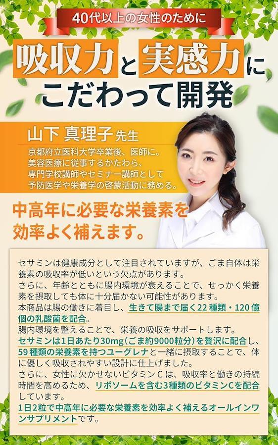 セサミン、リポソーム、乳酸菌を黄金比で配合した、次世代オールインワン・サプリメントです。