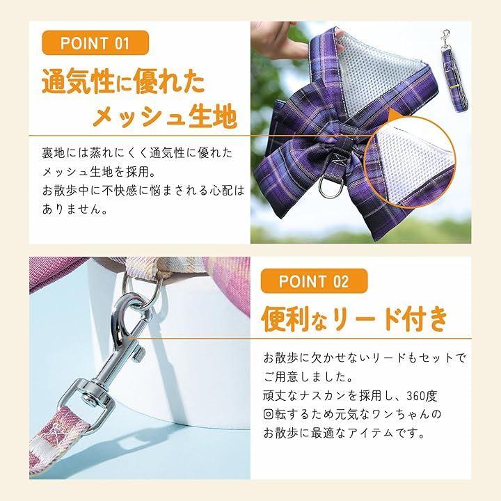 魅力的なデザイン:おしゃれで可愛いデザインの犬用ハーネスとリードセット。