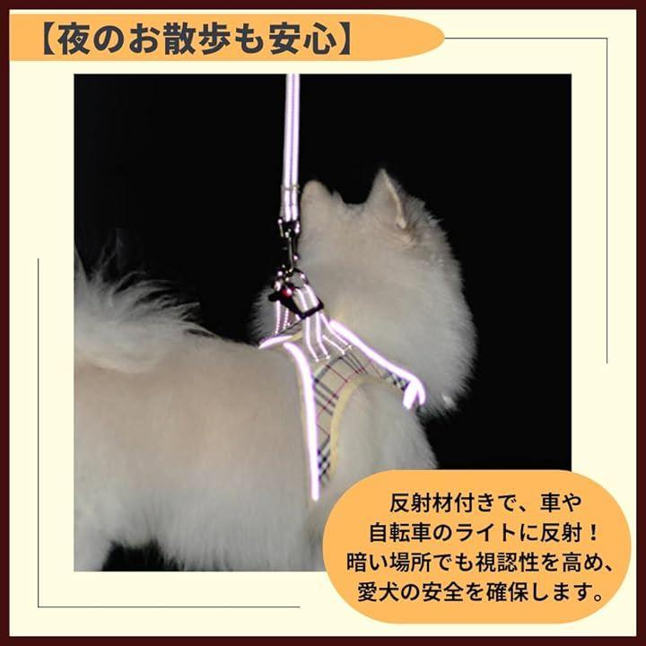 「夜のお散歩も安心」反射材付きで、車や自転車のライトに反射。暗い場所でも視認性を高め、愛犬の安全を確保します。