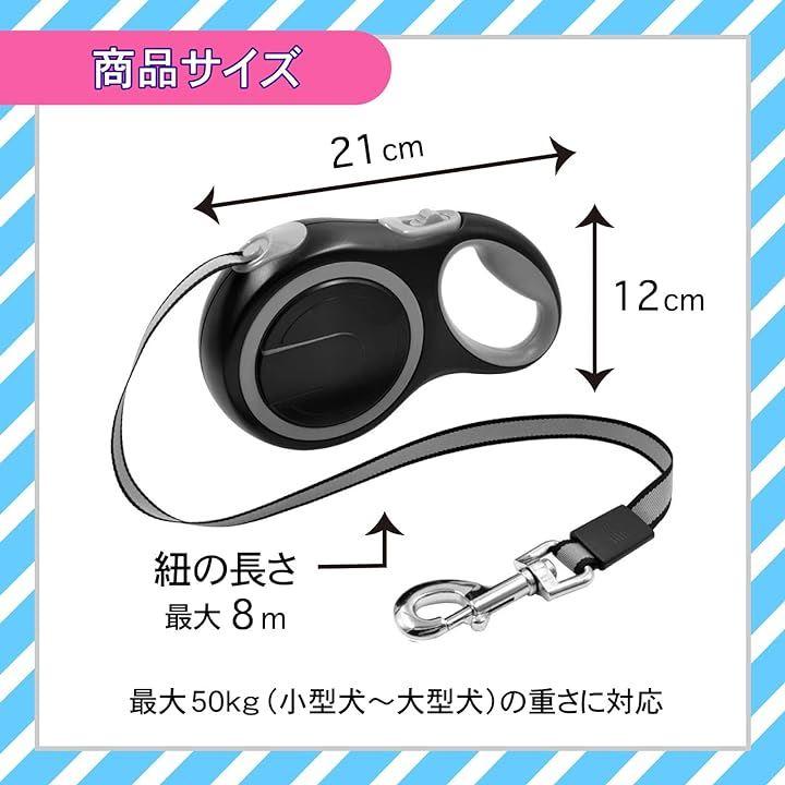 「仕様」本体サイズ:約21x12cm、本体重量:約0.4kg、材料:ABS+TPE+ナイロン、タイプ:長さ8m荷重50kg、包装箱サイズ:23x13x5cm、包装重量:約0.4kg