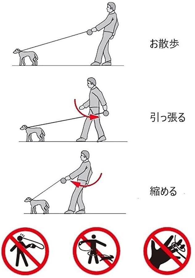 ・ABS+TPE素材で作った持ち手は滑りにくく(滑らない)、リーシュ(紐)の結び目防止機能付きで、いつでも簡単伸縮や快速収納が可能。