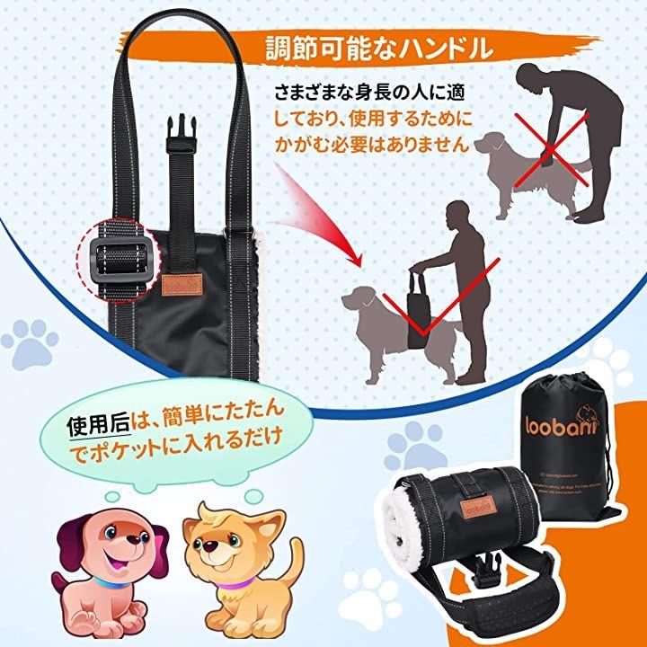 ・ 「調節可能な犬 補助ハーネス」:犬の歩行補助ハーネスの長さは身長や犬の種類によって自由に調節できます。