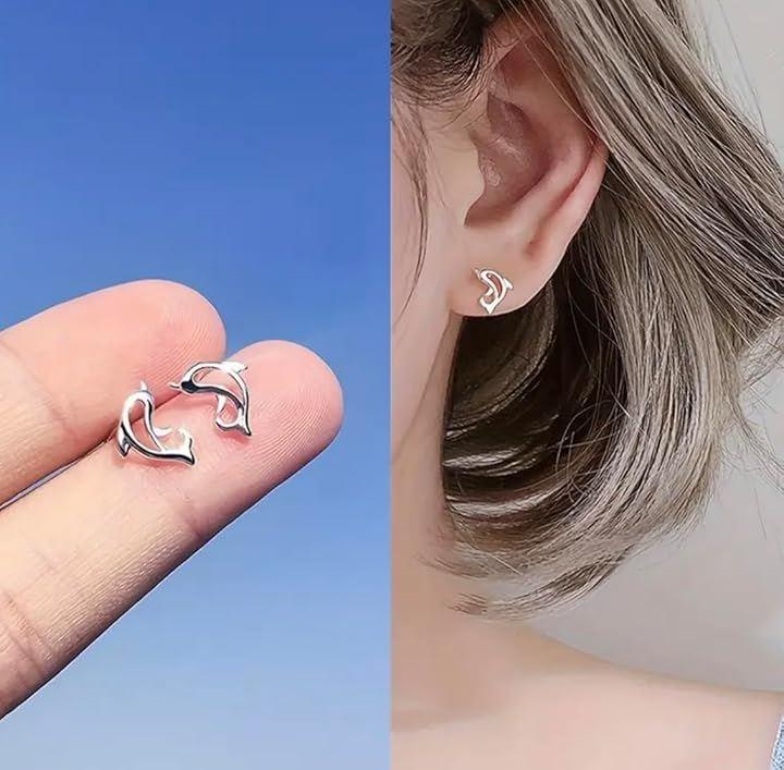 愛らしさと上品さを兼ね備えた、イルカモチーフのジュエリーピアス2個セットです