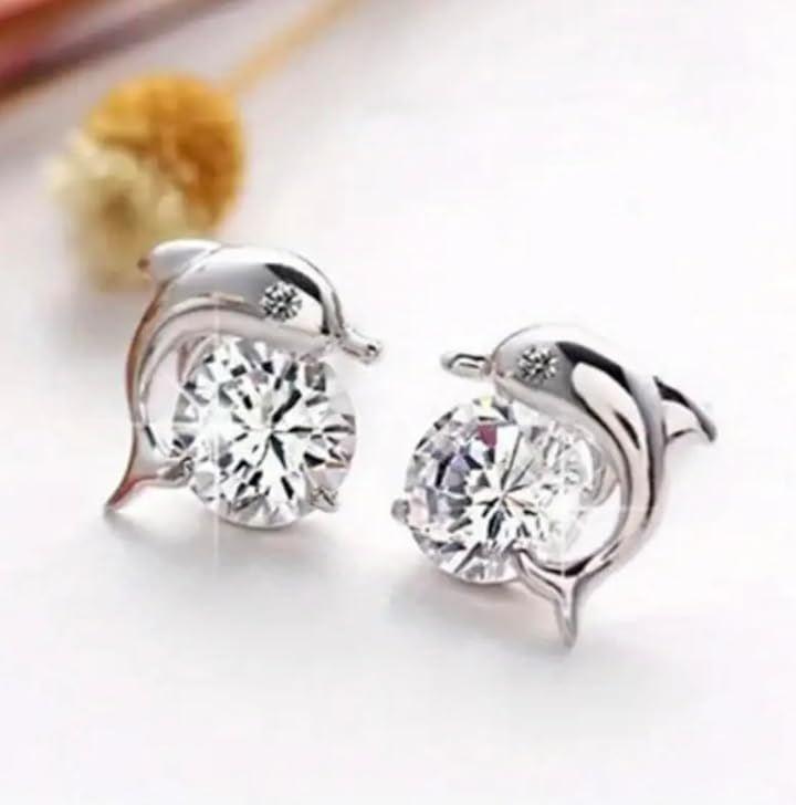海の妖精イルカが耳元で優雅に泳ぐ、ジュエリー感あふれるピアスの2個セット。