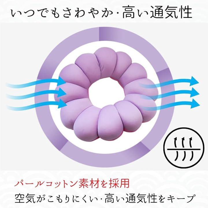 「いつでもさわやか・高い通気性」ドーナツ型デザインとパールコットン素材を採用した介護クッション。