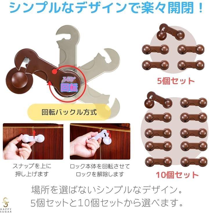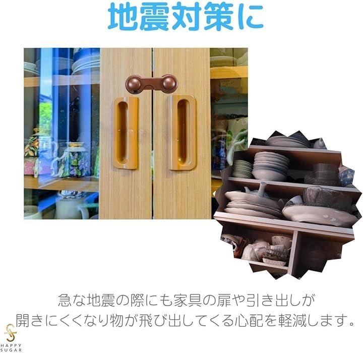 ワンタッチで簡単にロック&解除ができるので、赤ちゃんやペットが家具の扉や引き出しを開けてしまうのを防ぎ、指はさみなどの危険から守ります。