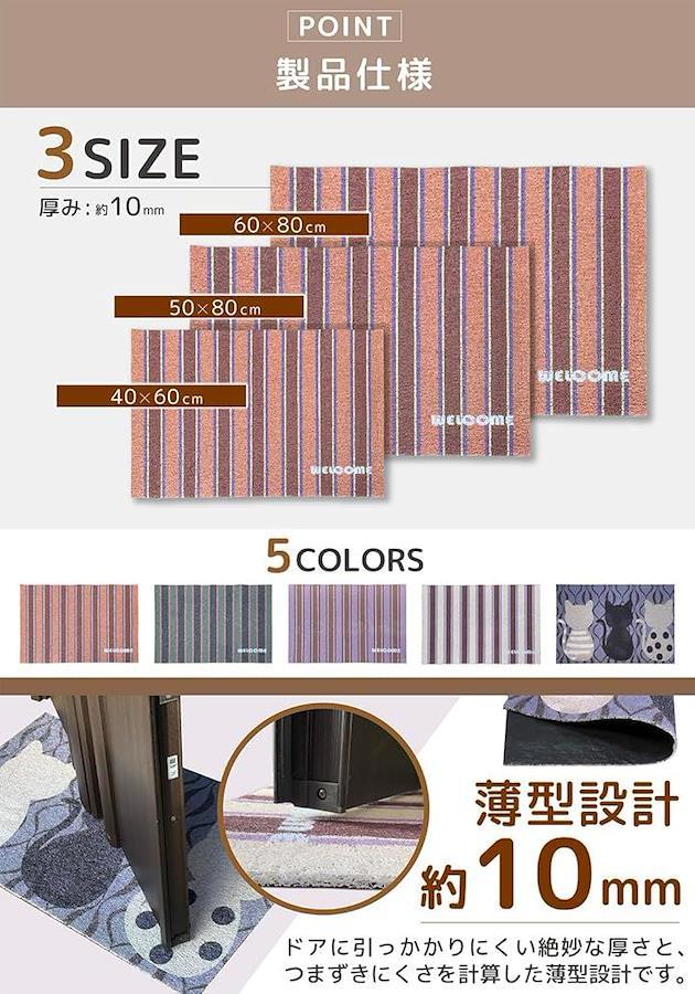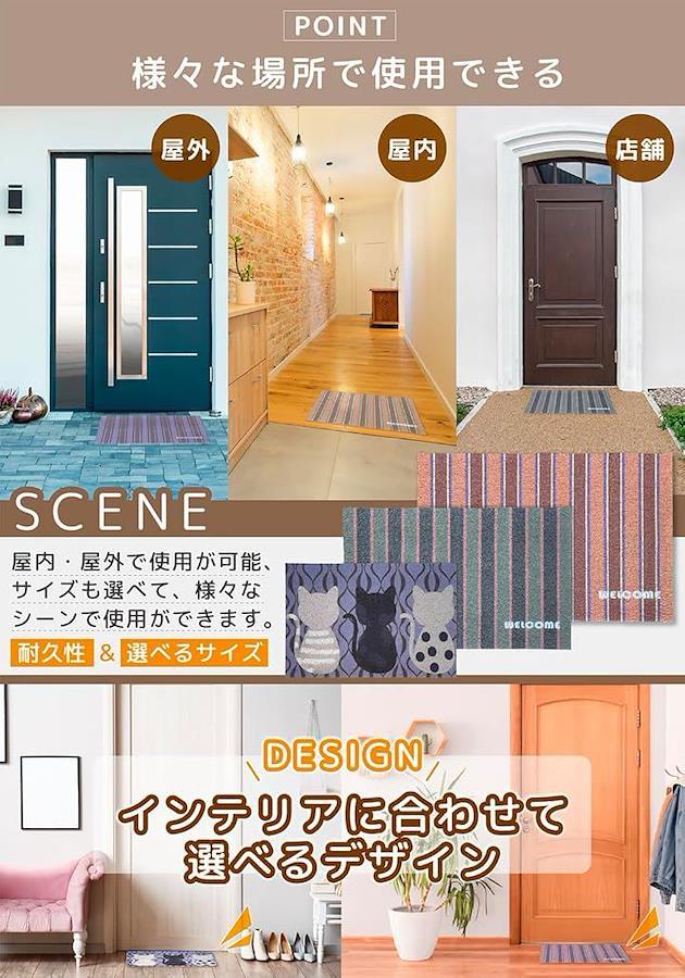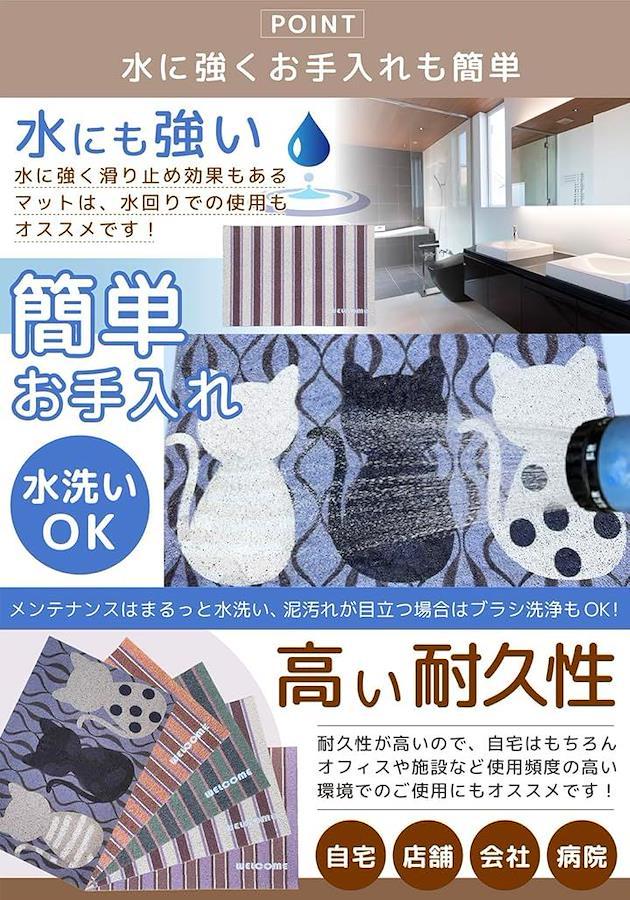 玄関にぴったりの「WELCOM」メッセージと可愛らしい「ねこ柄」のデザインが特徴です。