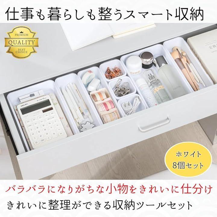 「仕事も暮らしも整うスマート収納」引き出しの中でバラバラになりがちな小物・文具・カトラリー・化粧品などをきれいに仕分けて整理ができる収納ツール。