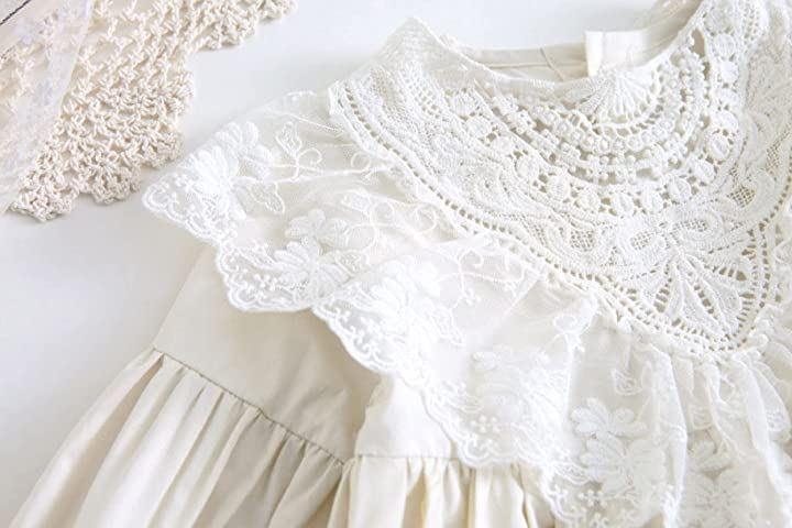 ハイウエストの切り替えとレースの付け襟が可愛いデザインセレモニードレス。