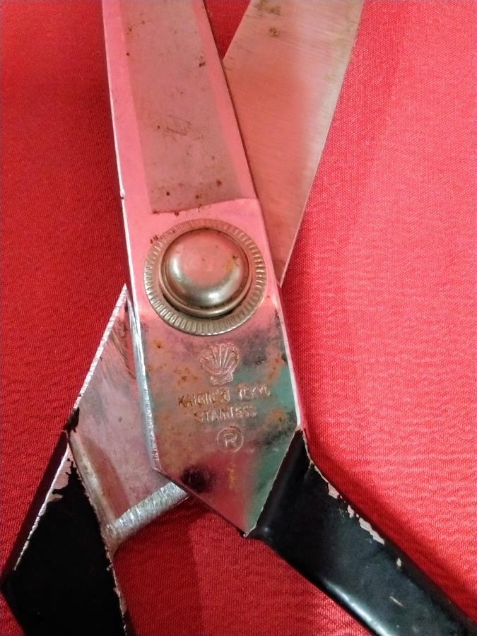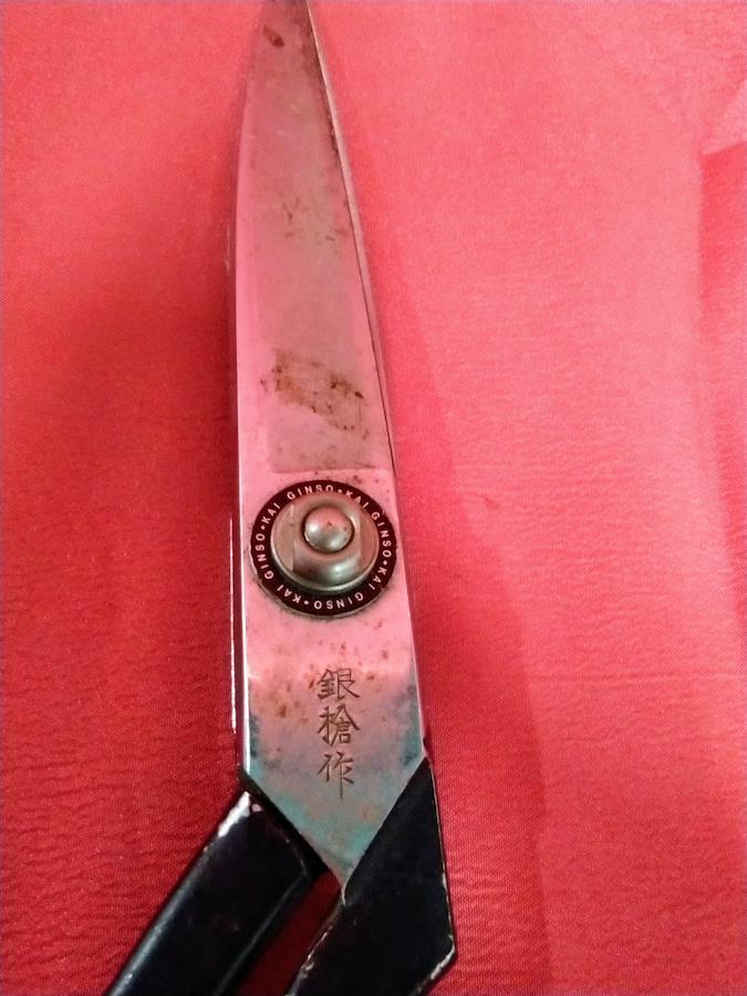 日本製 一流メーカー 貝印【銀槍作】手芸用裁ち鋏/布切り鋏です。中古の品物ですので汚れやキズは御座いますが、とてもよく切れる鋏です。長さ約25cm 幅約8cm