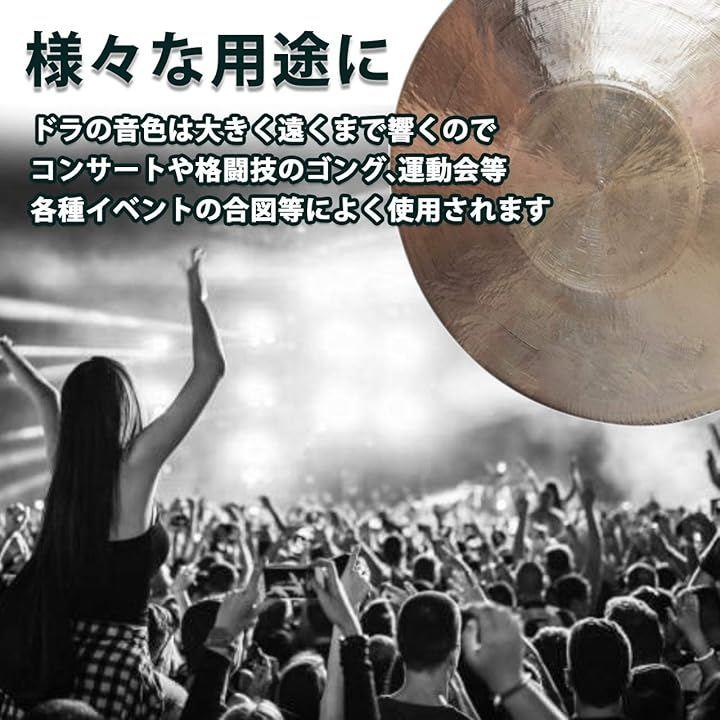 「様々な用途に」ドラの音色は大きく遠くまで響くので、運動会やコンサート、格闘技のゴング、各種イベントの合図等によく使用されます。