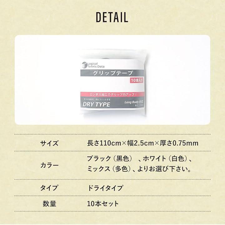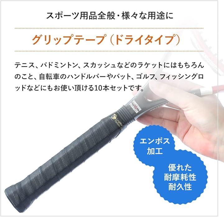 コストパフォーマンスに優れた大容量10本入り このグリップテープは、ベーシックカラーのブラックで10本入りの大容量セットとして提供されています。