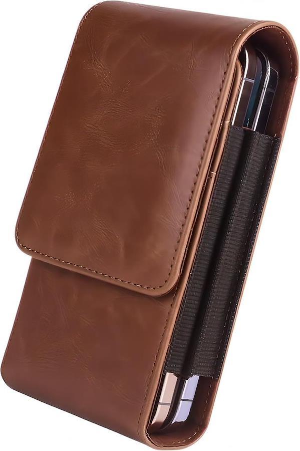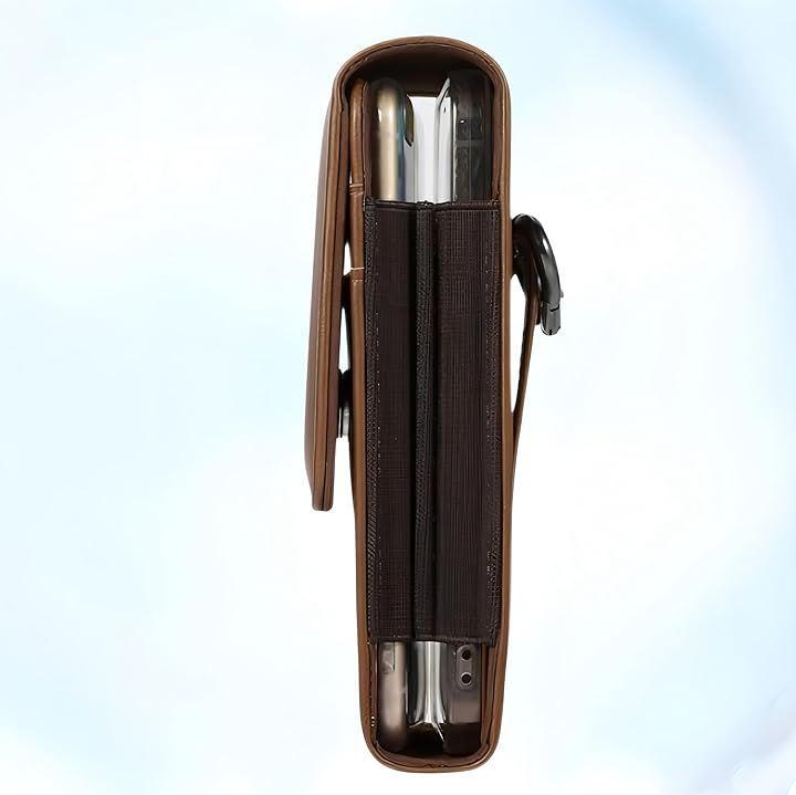 スマートフォンを2台持ち歩くビジネスパーソンに最適な、bubuluの縦型ホルスターケースです。