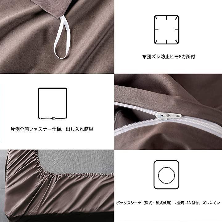 ・エジプト超長綿100%--最高級綿の一種として有名 ・肌ざわりが良い ・通気性にとんだ ・静電気が溜まりにくい ・洗濯機で丸洗いOK ・300TCサテン調エンボス加工 ・布団ズレ防止ヒモ8カ所付 ・全開ファスナー仕様:安心のYKKファスナーを採用 ・OEKO-TEX認証取得