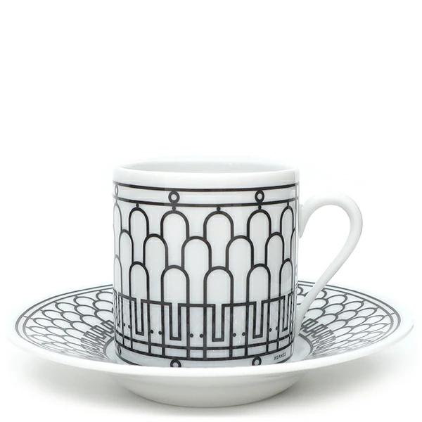 エルメス HERMES Hデコ コーヒーカップ&ソーサー Hデコ 食器 磁器 ホワイト×ブラック 新品 未使用 アッシュデコ モーニングカップ ポーセリン - メンズ レディース ユニセックス 【箱】 【中古】