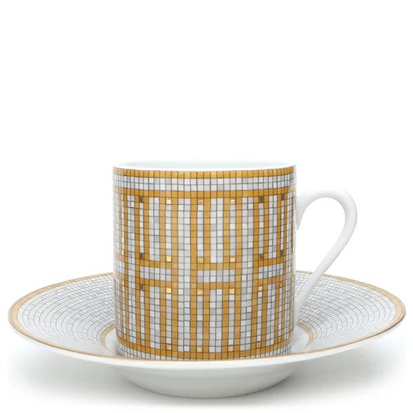 エルメス HERMES モザイク 24 コーヒーカップ&ソーサー モザイク 24 食器 磁器 ゴールド 新品 未使用 モーニングカップ ポーセリン - メンズ レディース ユニセックス 【箱】 【中古】