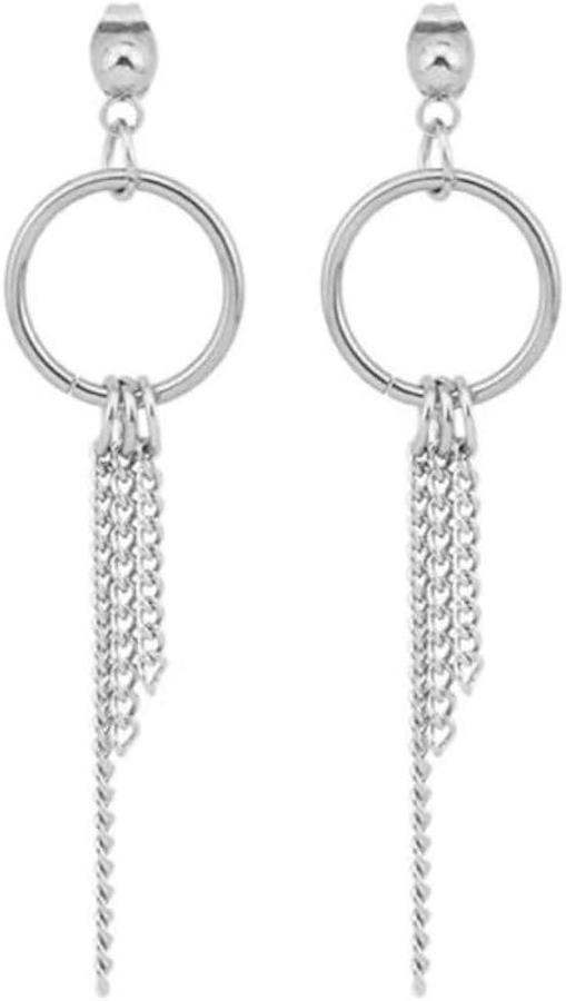 「デザイン」両耳用2つ入り、ステンレス素材の垂れ下がりチェーンピアス / トレンド感溢れる垂れ下がりデザインのスタッドのリングアクセサリーは、シンプルながらも存在感抜群。