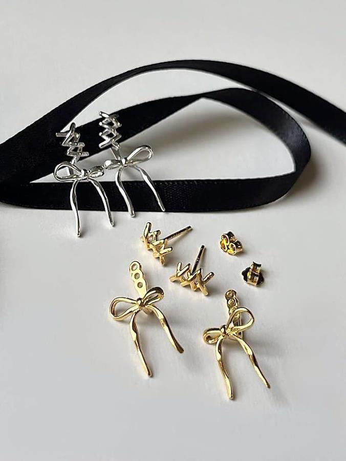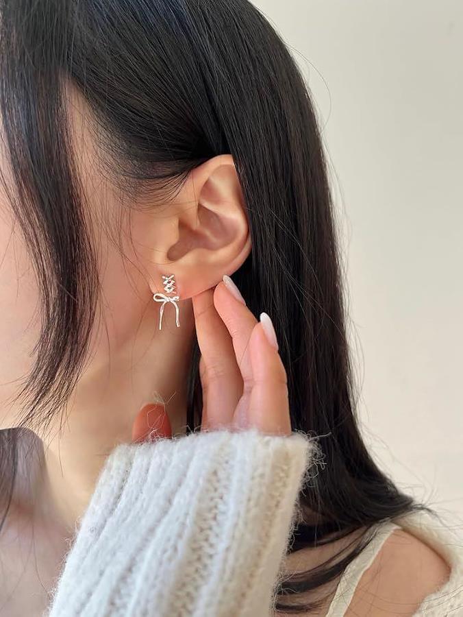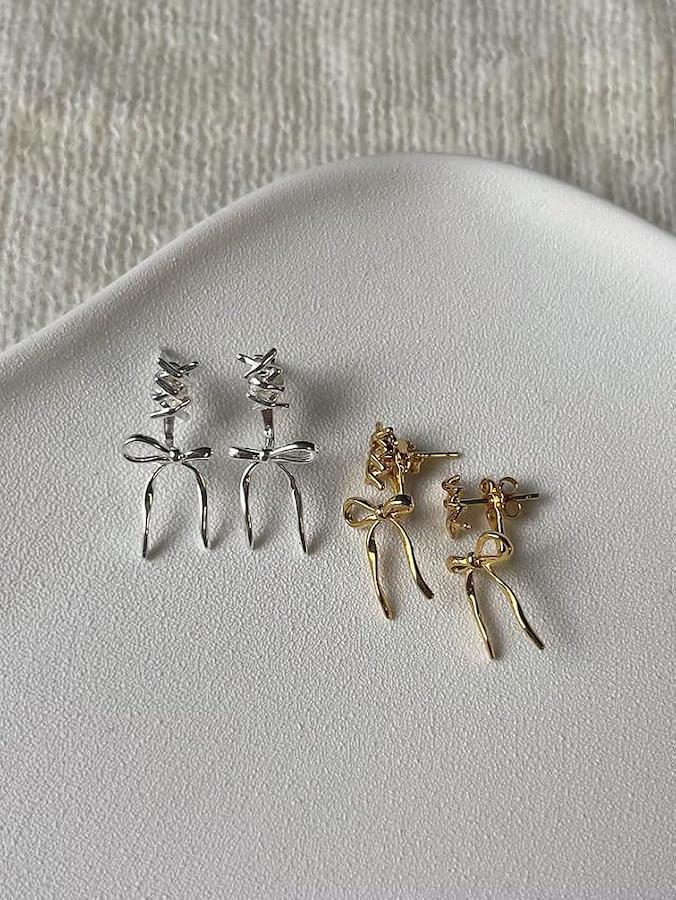 スタイリッシュなリボンデザイン: 上品でエレガントなリボンの形をしたピアスは、シンプルながらも存在感があり、コーディネートのアクセントにぴったりです。
