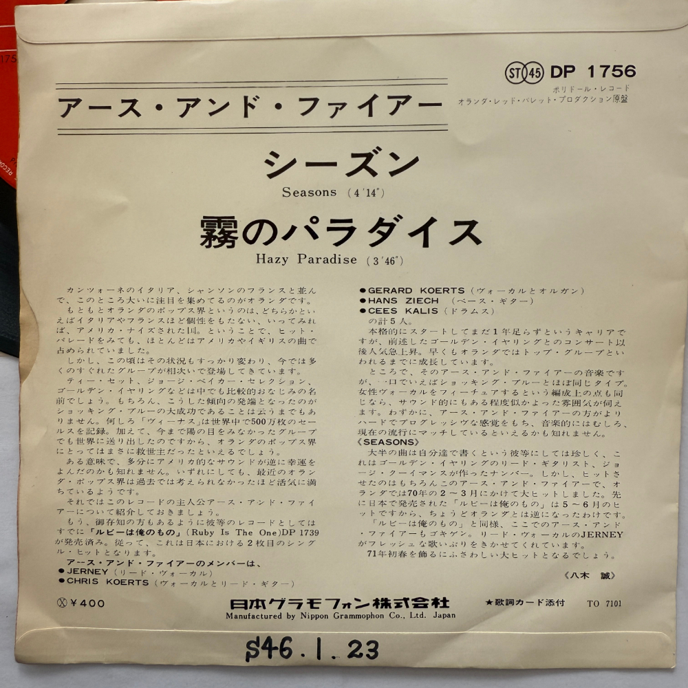 Earth & Fire Showa Era Vintage EP Record Seasons Mist Paradise 7-inch Extended Play