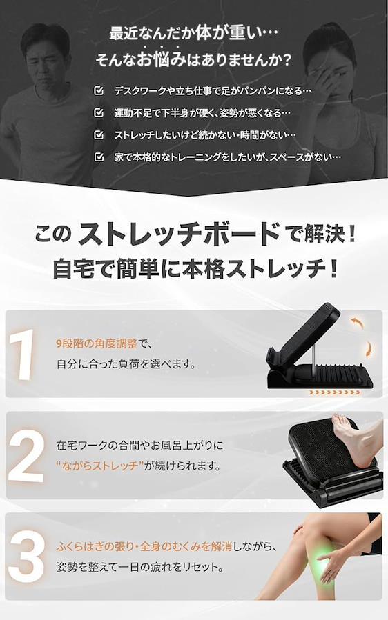 忙しい毎日でも“ながらケア”が続けられる、家庭用の本格ストレッチ器具です。
