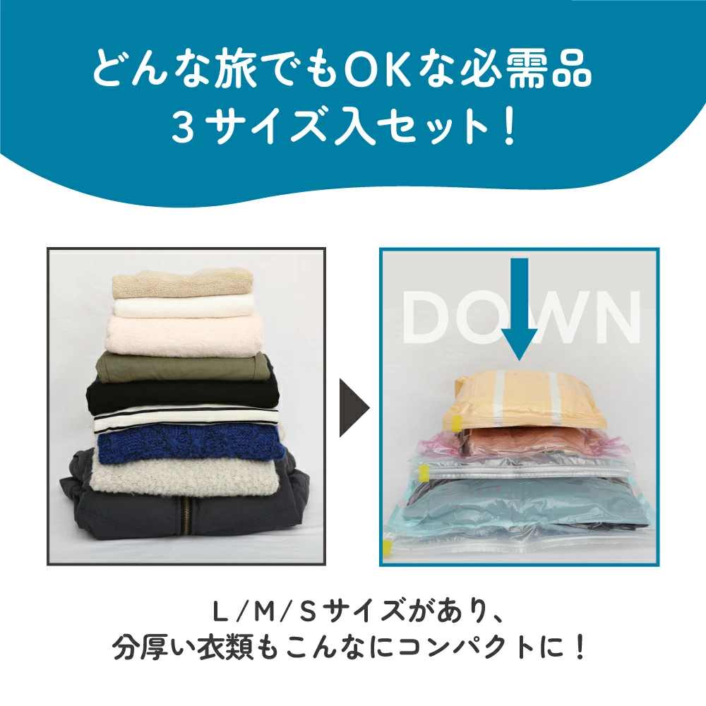 ●どんな旅行でも、このセットでOK!●人気のS・M・Lのセット●臭いを防ぐ抗菌フィルム仕様