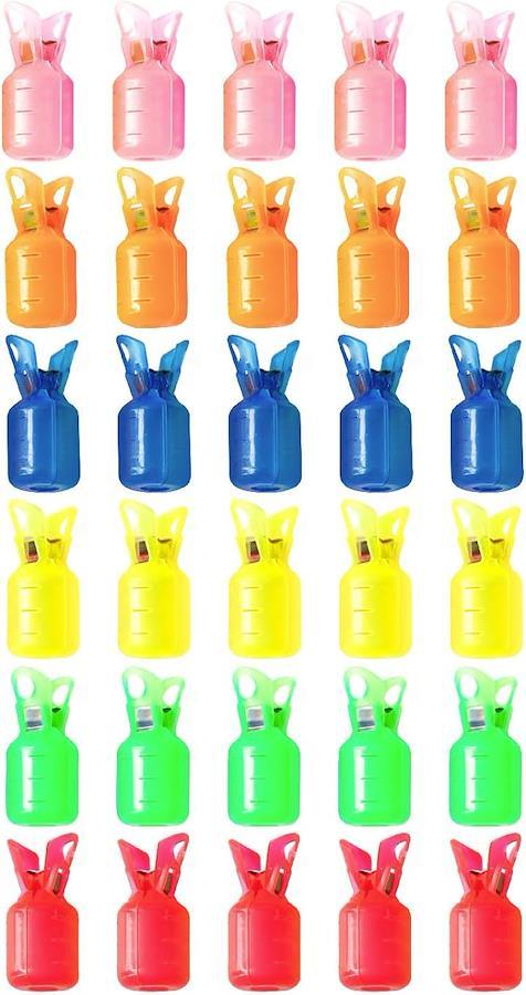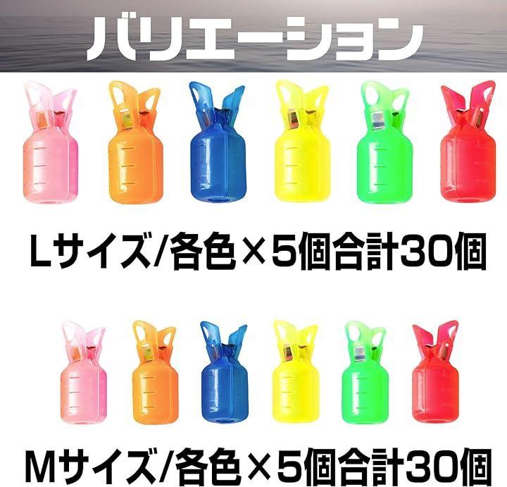 「商品仕様」セット内容:各6色x5個 30個セット カラー:レッド.ブルー.グリーン.イエローグリーン.オレンジ.ピンク サイズ:L 53mmx24.7mm 素材:PE 重さ:L 約4.6g *モニターの環境により、色の見え方に若干差が生じる場合がございます。