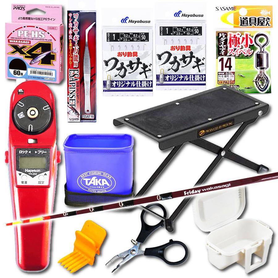 ・タカ産業 WK-0008 ワカサギ用ライブウェル :1点・フライデー ワカサギ 穂先(21cm or 27cm) S :1点・ハピソン 水深カウンター付ワカサギ電動リール YH-202 :1点・プロックス PE-HS ワカサギX4 0.2号 60m :1点・ワカサギたたき台テーブル :1点・明邦 ベイトボックス 99 オフホワイト :1点・ベーシック ミニプライヤー 先曲がり :1点・ささめ針 エサピンセット SAT19 :1点・NPK ワカサギぷっちん #2627 :1点・ささめ針 道具屋さん 極小スイベル 片ダイヤアイ PA252 14号 :1点・ハヤブサ ワカサギ仕掛け 5本鈎 秋田キツネ型 針1号:2枚--------------------------------