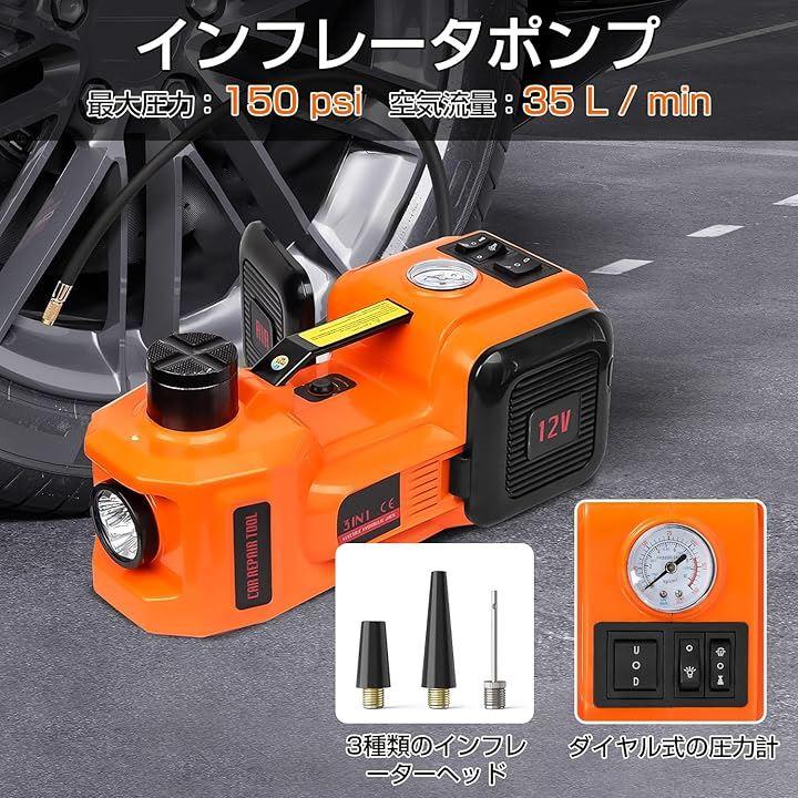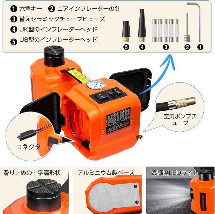 「簡単操作」タイヤを手動ジャッキに交換するには時間がかかりますが、電動ジャッキを使用すると、楽々と車を持ち上げることができます。
