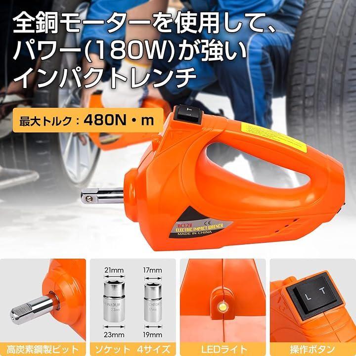 インパクトレンチは全銅モーターを使用しており、パワー(180W)が強く、最大トルクは480N・mです。