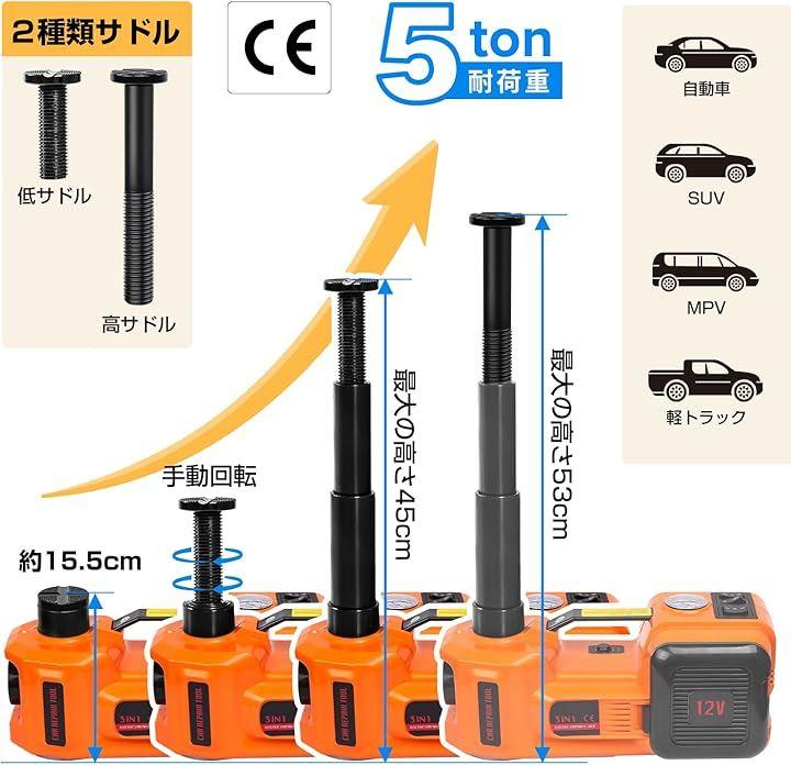 電動ジャッキのリフティング能力: 5トン、リフティング範囲: 155mm-450mm/235mm-530mm、2つのトップロッド付き。