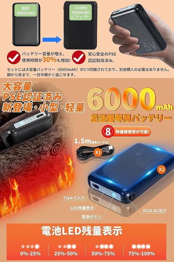 「PSE認証大容量バッテリー&3段階温度調節」日本のPSE認証を取得した6000mAhの大容量バッテリーが2つ付属しています。