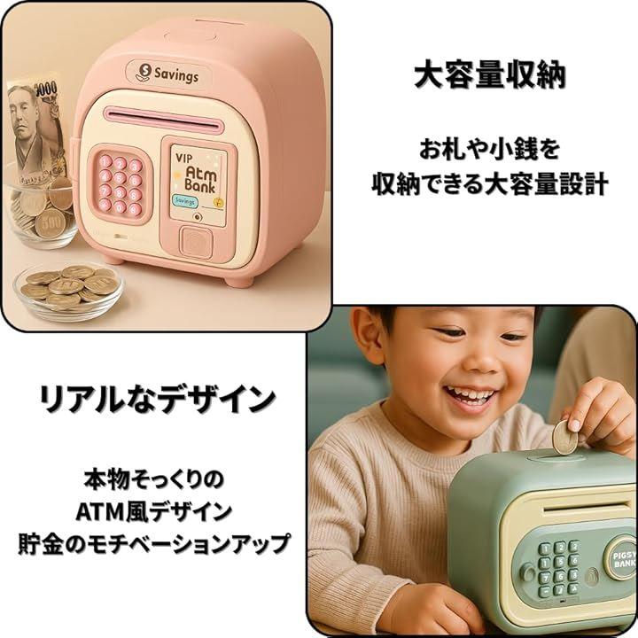 「リアルなATMデザイン」本物そっくりのATM風デザインで、子供から大人まで楽しめる貯金体験を提供。