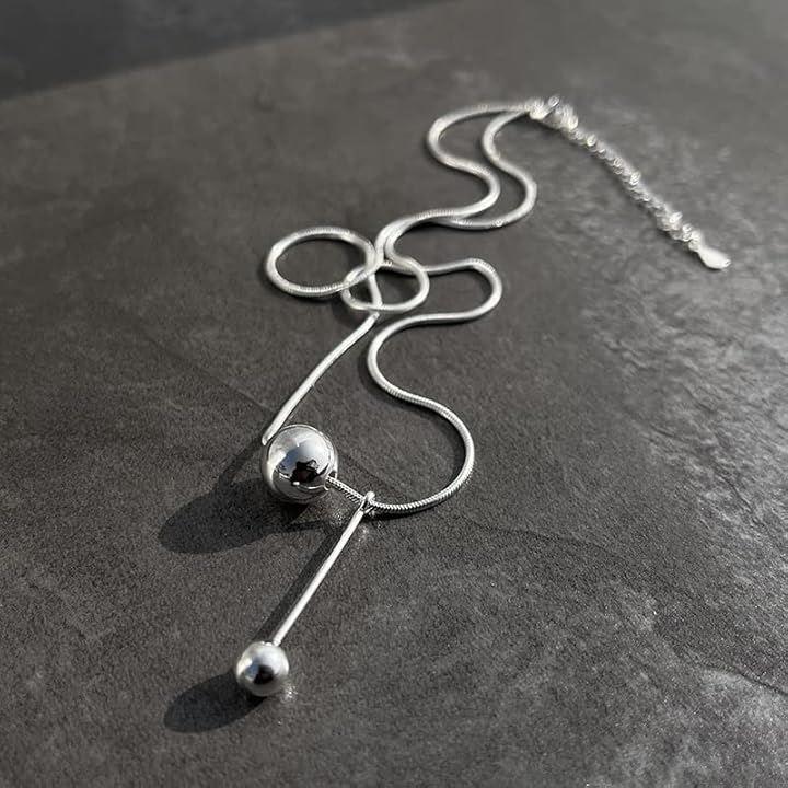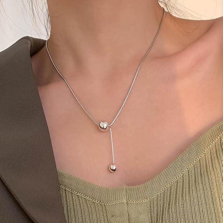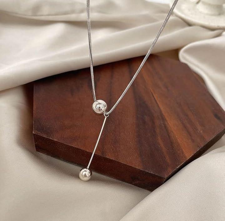 「デザイン」洗練された輝きを胸元に添える、メタルボールY字ネックレス / シンプルながらも品のある存在感で、どんなコーディネートにもスッと馴染むY字デザインのネックレス。