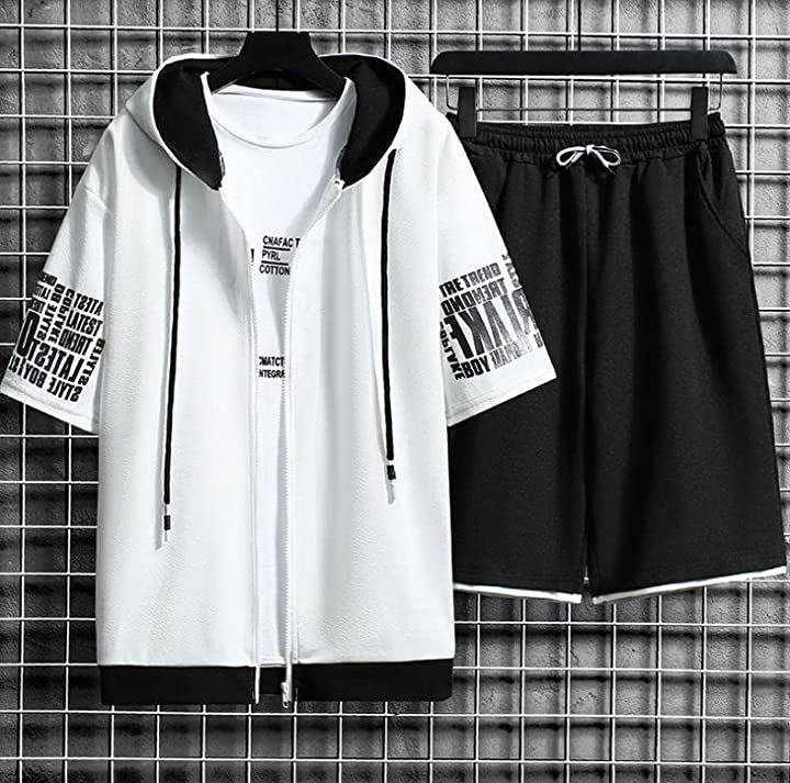 Emptio Street Full Zip Short Sleeve Hoodie Half Pants Fashionable Top and Bottom Set Men's