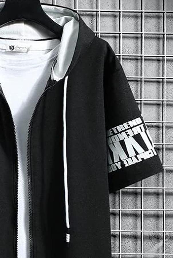 ・*これからの季節にちょうど良い綿混合のさらっとした生地なので、吸水性のインナーのシャツもピッタリのアイテム**シンプルかつスポーティーなスタイルの半袖スウェットパーカーと五分丈ハーフパンツの2点セット*