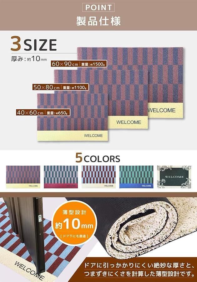 「用途に合わせてお使いいただける3サイズ」40cmx60cm、50cmx80cm、60cmx90cm 一般的な長方形デザインです