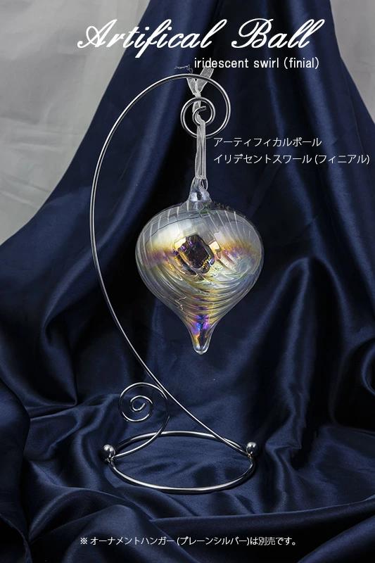 イリデセントは虹色、スワールは渦。この2つの組み合わせがなんとも美しい化学反応を起こしました。厚手のグラスボールで存在感もかなりあります。