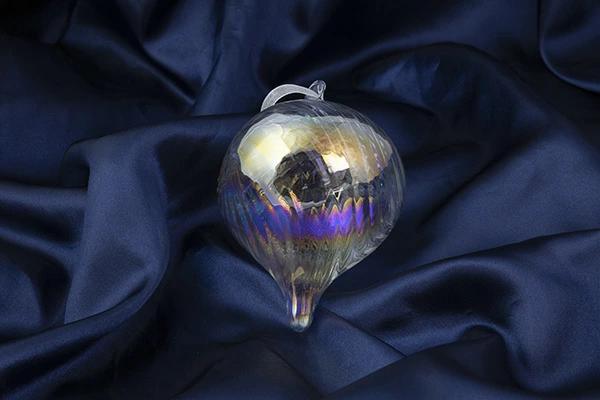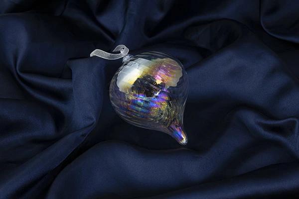 いろいろなオーナメントと合わせやすい透明なボールに虹色の輝きを含ませ、渦状のなめらかなラインを施しました。日本ではプラスチック製にその座を譲り、あまり見かけなくなった感のあるガラス製のボール。しかし、その風合は繊細なものだけが有するオーラを放っています。プラスチックにはない光彩と優越感をお楽しみください。