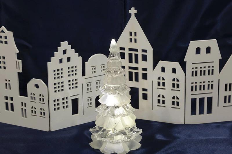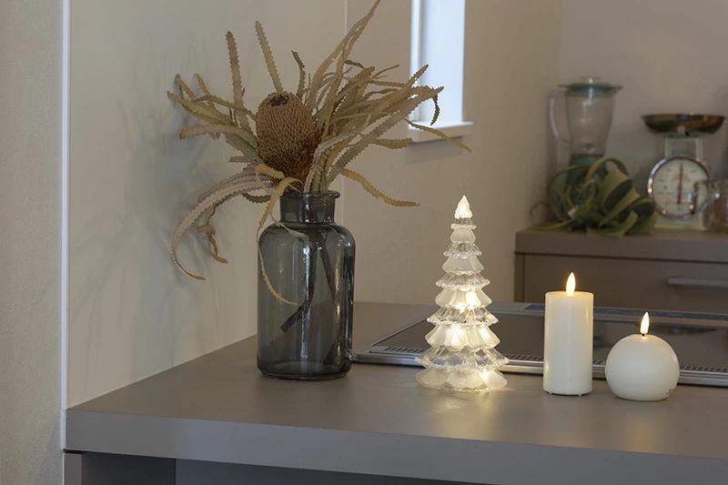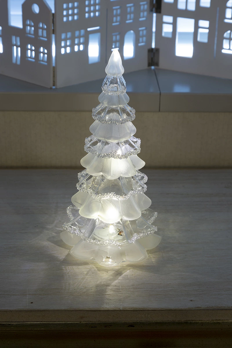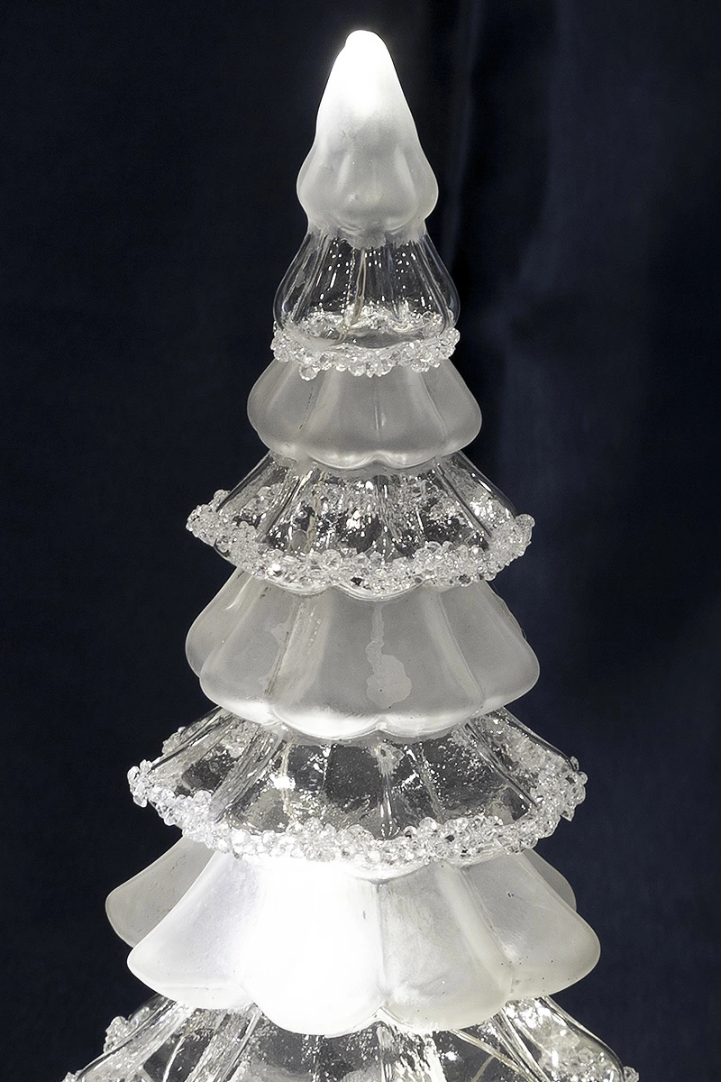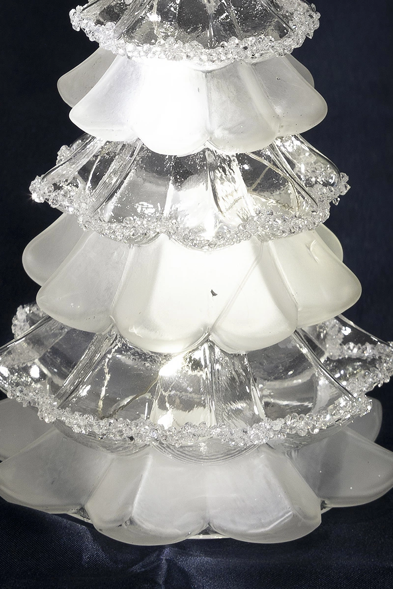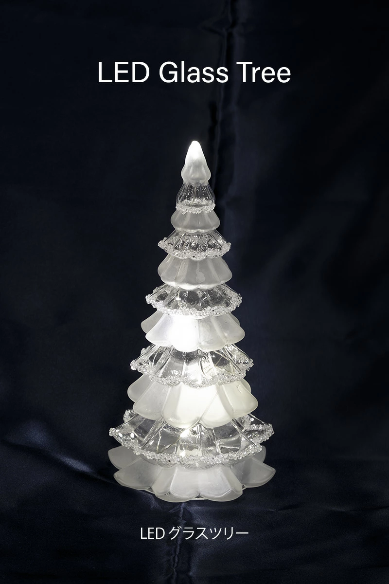 LEDグラスツリー☆白き輝きを聖なる夜に精緻な装飾が施されたガラス製のXマスツリーです。その中に純白には輝くLEDライトを仕込み、聖なる夜を演出します