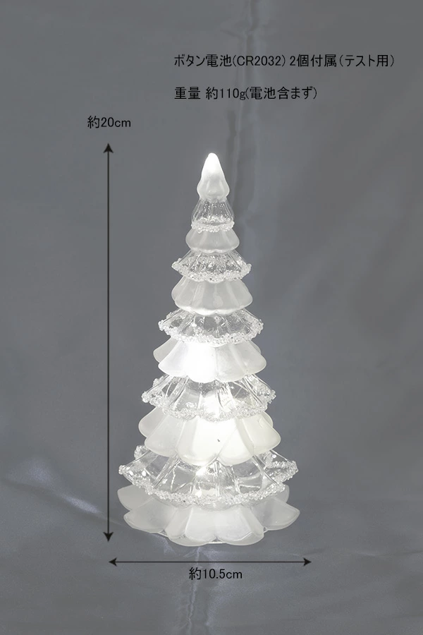 高さ:約20cm横幅:約10.5cm奥行:約10.5cm重量:約110g(電池含まず)材質:ガラス・その他※接着剤で付けてありますガラスグリッターが剥離しますので、ご了承願います。