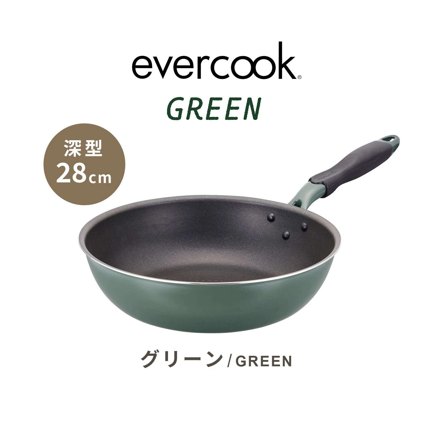 ■関連キーワードグリーンフライパン 緑 健康 オール熱源対応 洗いやすい 使いやすい 快適 丈夫 軽量 料理 調理器具 キッチン 一人暮らし 二人暮らし 新生活 お祝い 引越し祝い 新築祝い 結婚祝い 料理好き 妻 女性 女子 女の子 レディース 母 おかあさん おばあちゃん ママ バースデー 誕生日 お洒落 可愛い シンプル フライパン evercook GREEN エバークック グリーン 28cm 深型 IH ガス EGIDPL28GR 炒め鍋 ドウシシャ DOSHISHA LOW PFAS フッ素 有害物質 PFOS PFOAフリー 安全 軽い 大きめ おしゃれ かわいい くっつかない こびりつかない 焦げ付かない 長持ち 500日保証 ギフト プレゼント