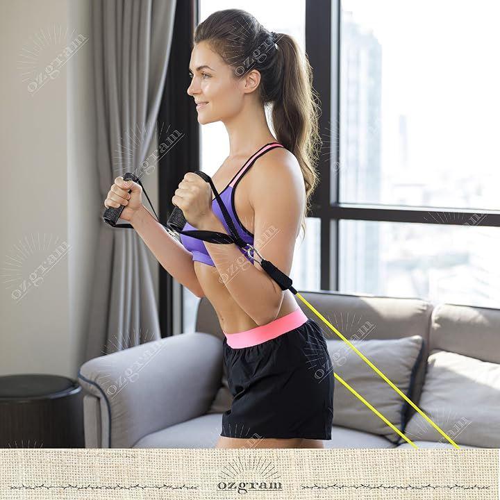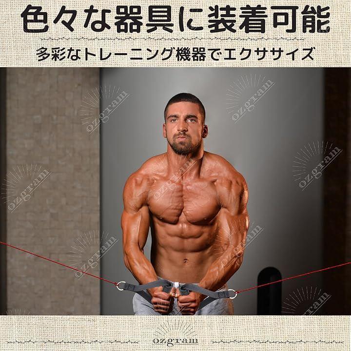 「色々な器具に装着が可能」 チューブやトレーニングマシンに取り付けてトレーニング可能。