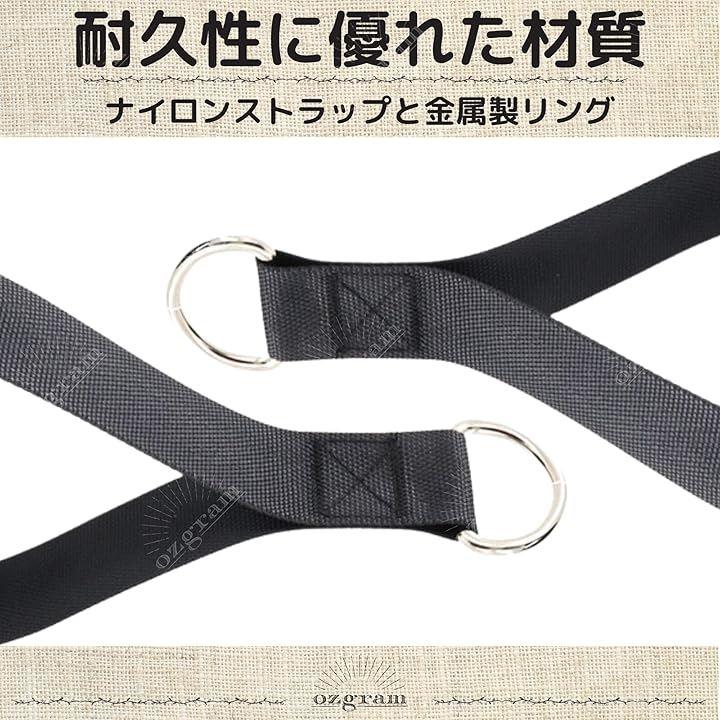 「耐久性に優れた材質」 ナイロンストラップと金属製Dリングで構成されており衝撃にも強く耐久性に優れた設計なので、高負荷トレーニングにも最適です。