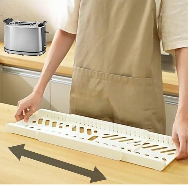 サイズ:横幅34.5~56cmまで伸縮可能、高さ15.3cm、キッチン棚やシンク下のスペースに合わせて調整可能